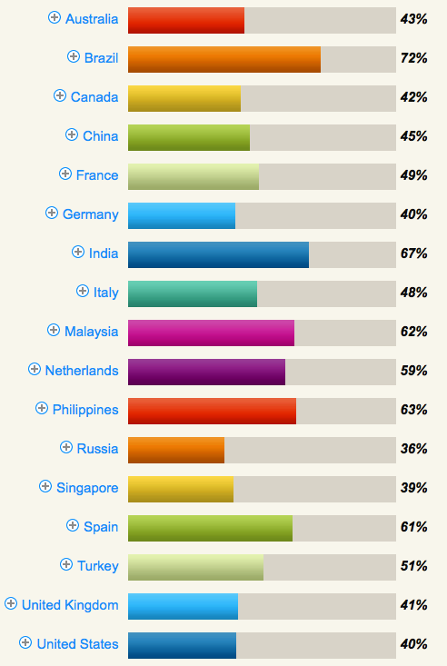 And here is a graph showing percentages of people from 17 countries who answered, Yes, they would like to “live forever.”